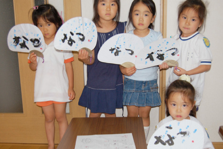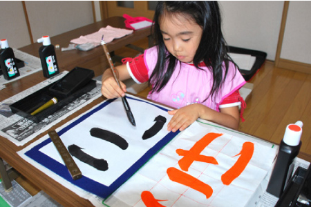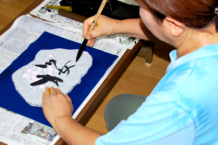 半紙に書くだけでなく石や布などにもチャレンジする事により、字を書く楽しさを自然に楽しく学べます。